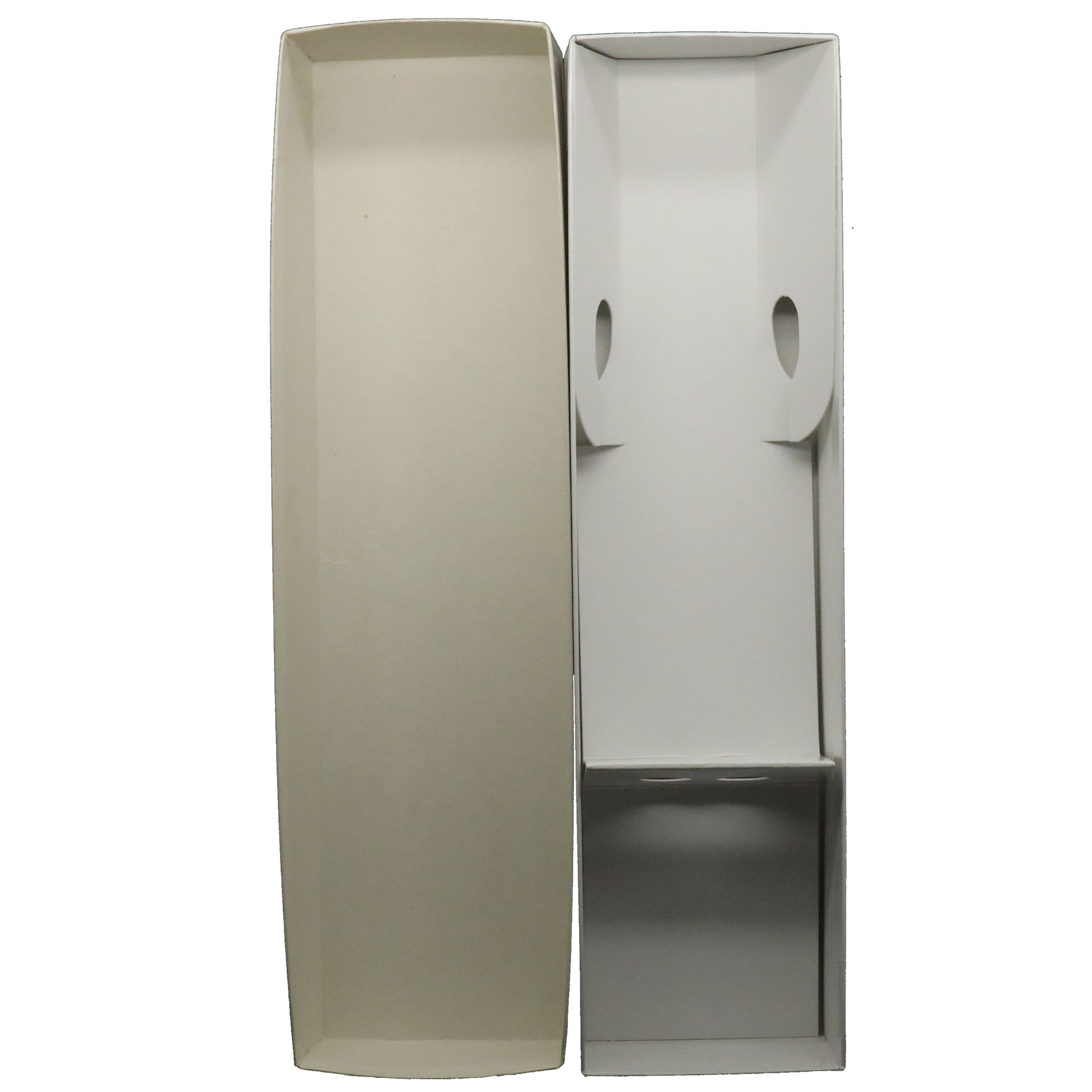 - Glossy cream lid, glossy white cardstock box and liner per set