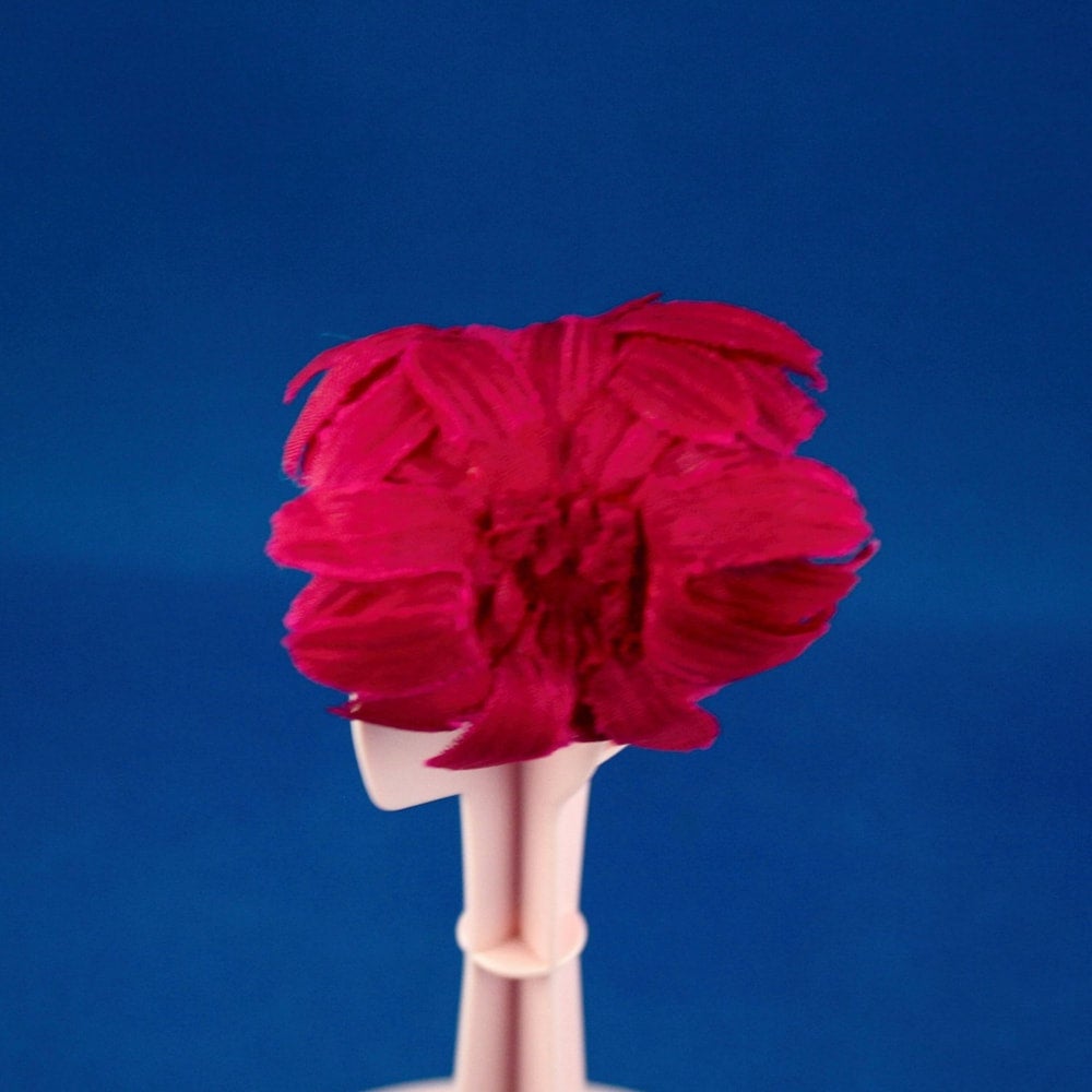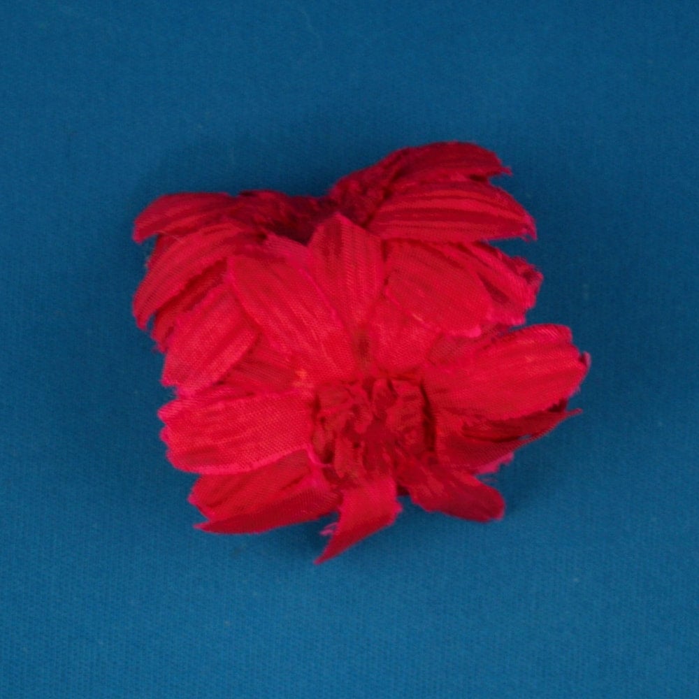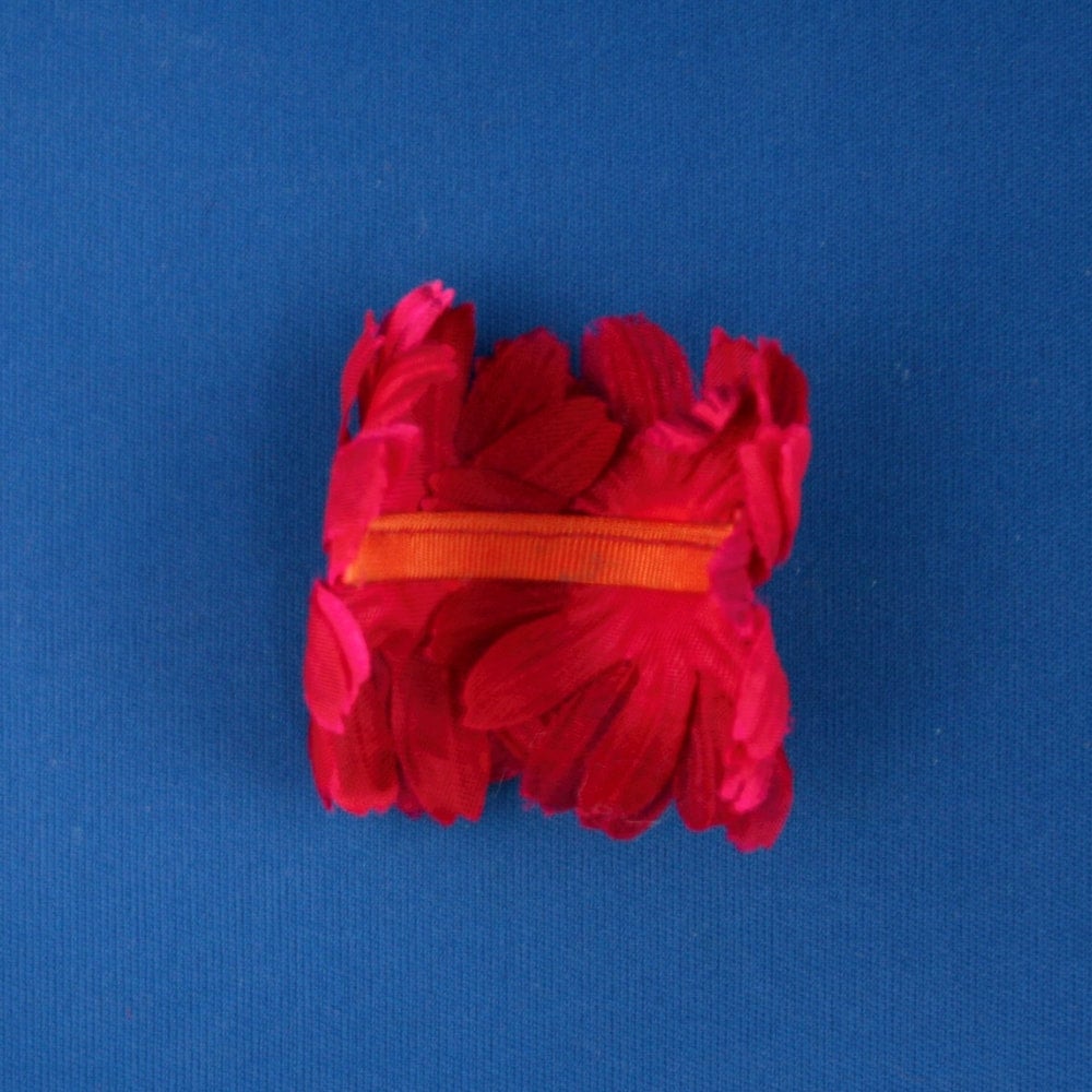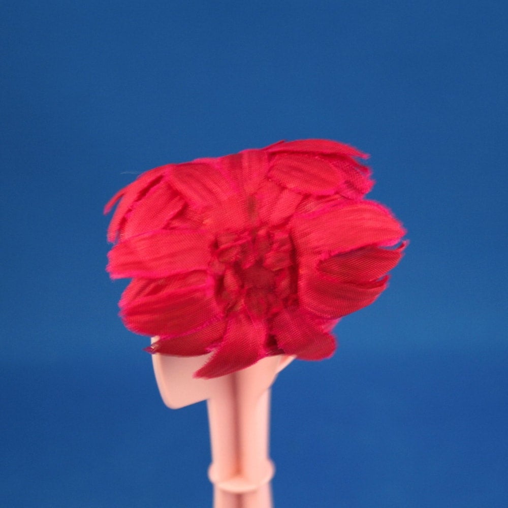 The camera hates this color. Even though the top petals are not as bright as the bottom petals, they are a deep red color. Some light handling. Original, inner head band is sturdy.