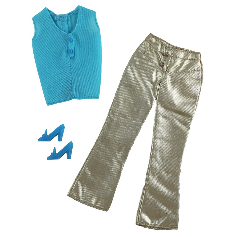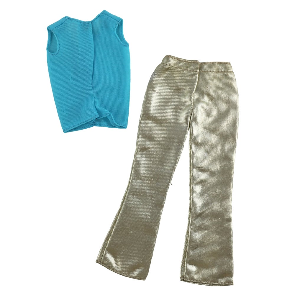 A very hard to find fashion in this fine condition. Pants show no handling. Blouse is the same. Heels are mint (M).