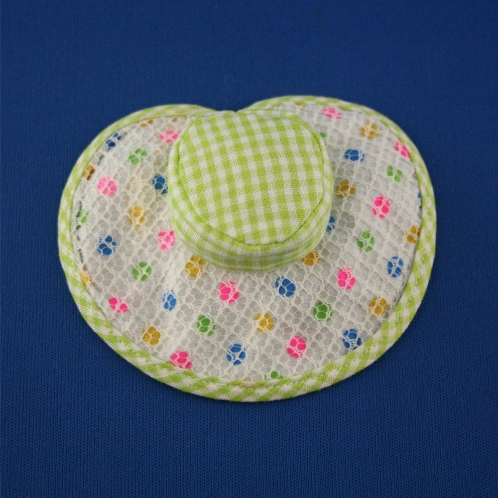 - Hat: Also has bright whites and fine color; Long, light tan spot in back, on brim, can be seen on the underside.