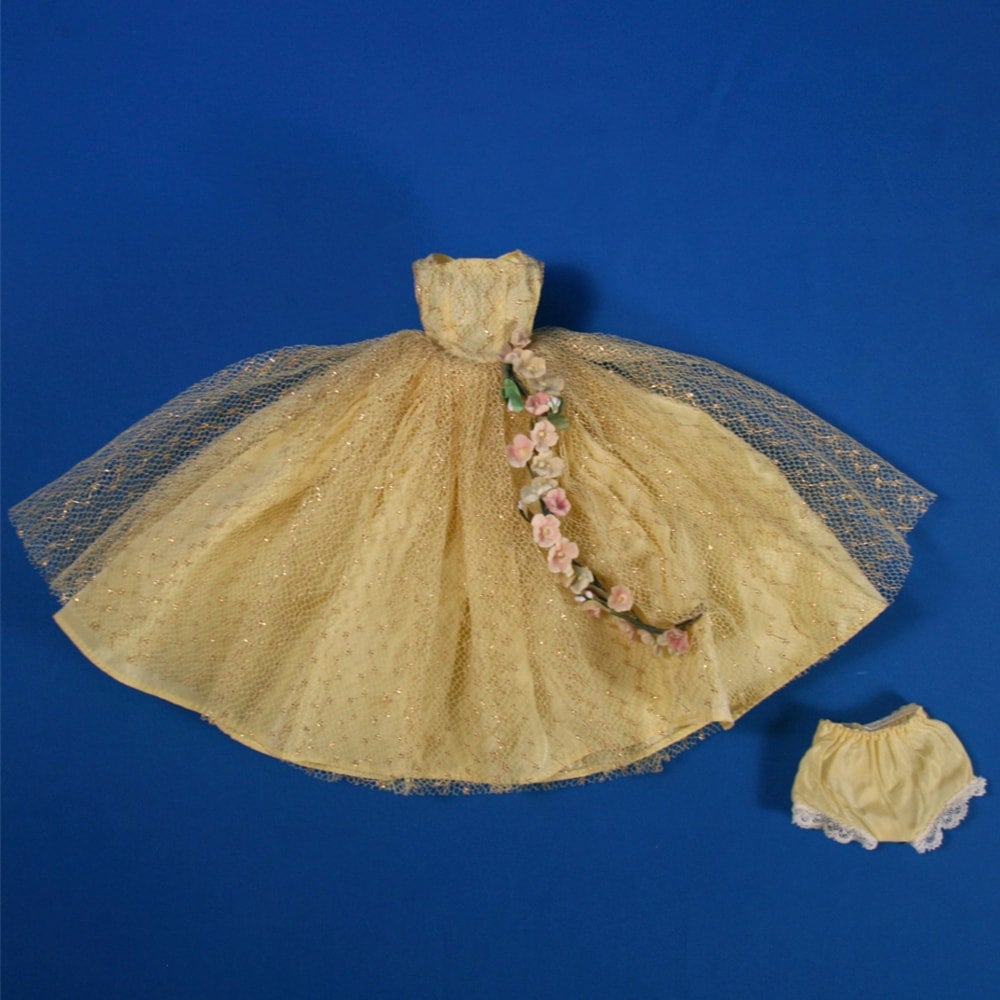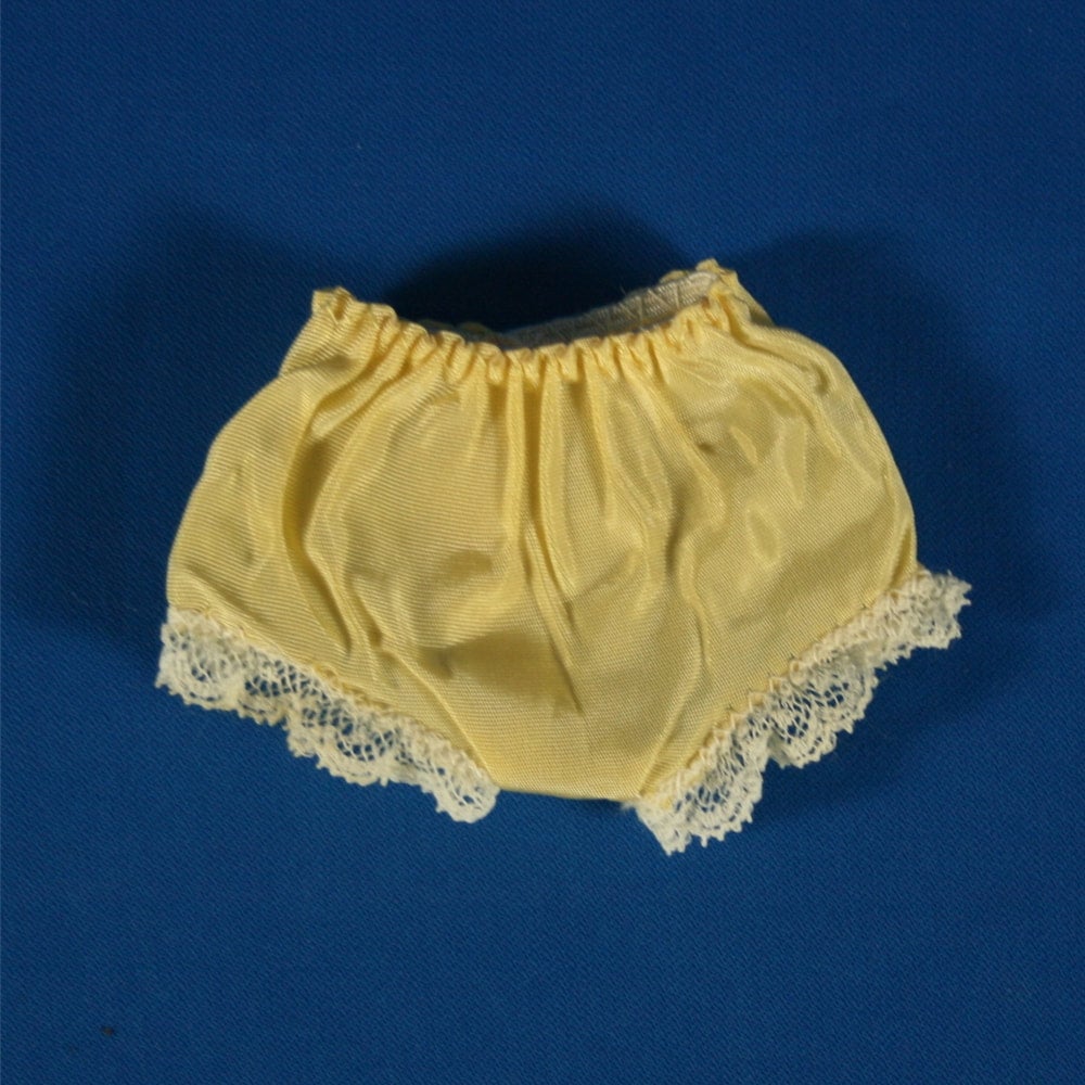 - Panties: Gold taffeta, of the material as gown; Elastic still intact