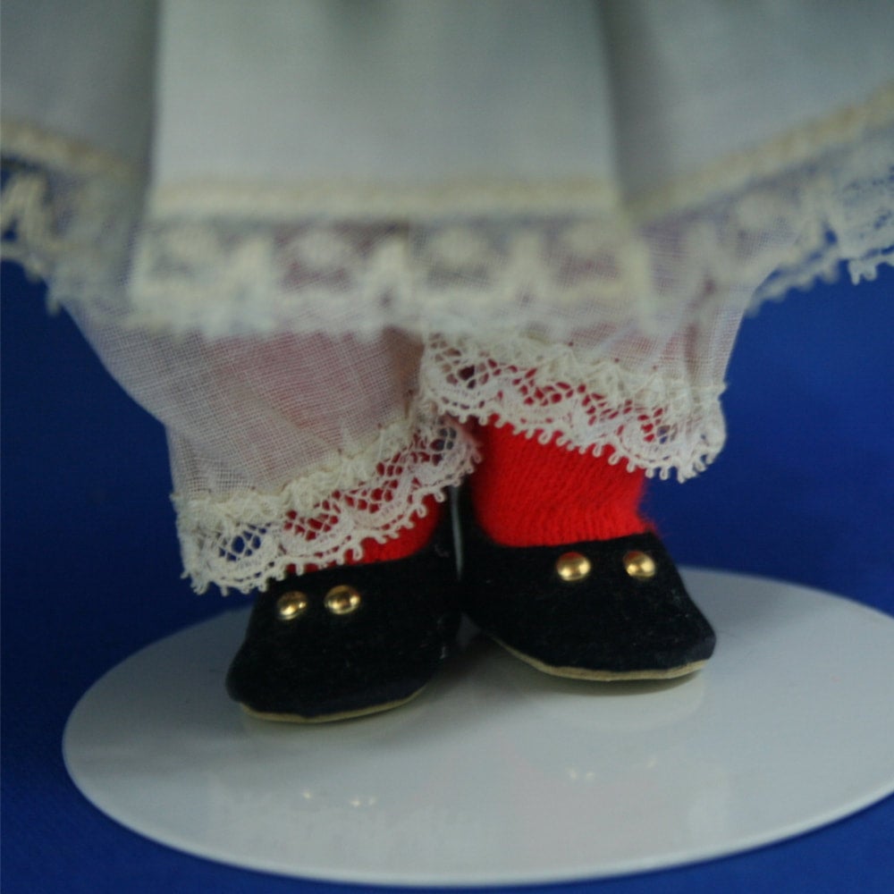 Bend Knee; 1960's International Series; All original costume from the flowers on her hat to the buttons on her velvet slippers.