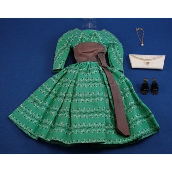 - Taffeta fabric in waist & sash has faded to an olive green.