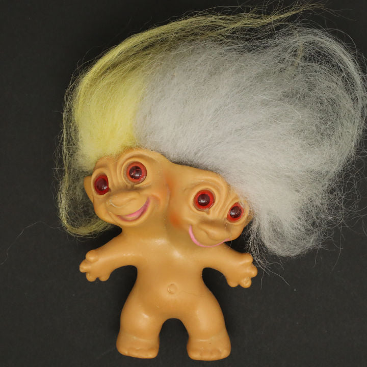 Uneeda 1965 3" Double-Nik Two-Headed Troll Doll - Yellow Light Blue